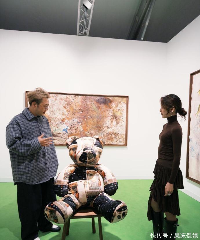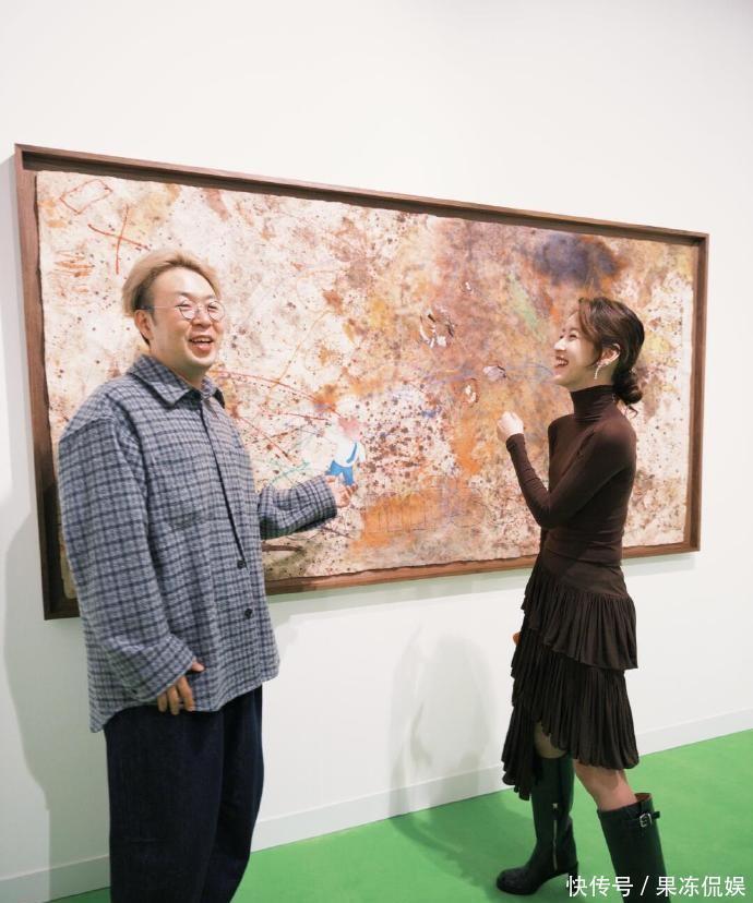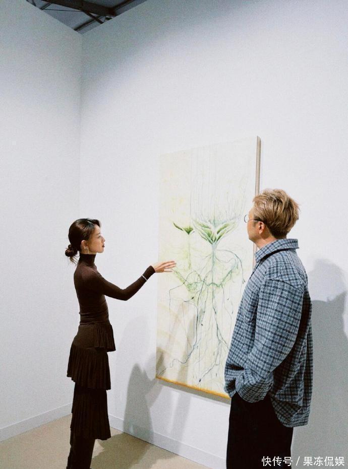 章泽天穿着咖色上衣加上不规则的半身全,高筒靴子,每一处都是精致穿搭,加上慵懒的丸子头更加的随性,看起来艺术感满满。跟着看展突然开窍了 原来艺术可以这么轻松有趣